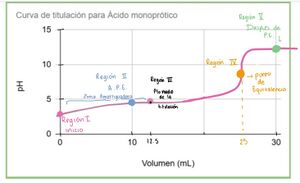 - Región antes del PE: Donde coexisten el analito sin reaccionar y el producto de la reacción, formando a menudo un sistema amortiguador.