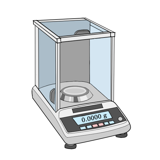 Ilustración de una balanza analítica vacía para demostrar la apariencia del aparato.